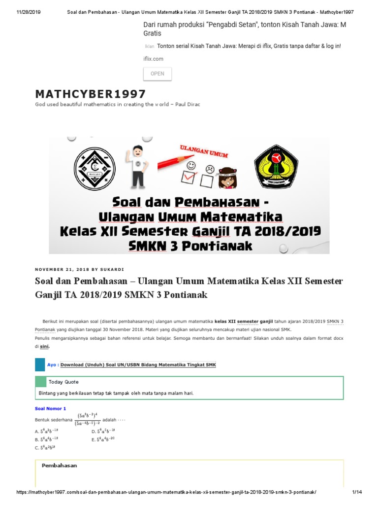 untuk "Soal Matematika Usbn Kelas 12 Smk - Soal Matematika Smk Dan Kunci Jawabannya - Contoh soal dan kunci jawaban kelas 1 sd kurikulum 2013."