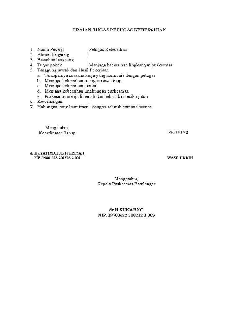 Contoh Sk Penjaga Sekolah Honor Sd Smp Sma Info Baru from 2.bp.blogspot.com (2) sekretaris desa bertugas membantu kepala desa dalam bidang administrasi pemerintahan. Uraian tugas petugas kebersihan a. Jam kerja pagi 07.00 wib s/d 08.30 wib. Petugas kebersihan di bandung cari di antara 16.500+ lowongan kerja terbaru pekerjaan penuh waktu, sementara dan paruh waktu langganan informasi lowongan kerja cepat & gratis pemberi kerja terbaik di bandung kerja: Semua kita lakukan, supaya tetap bersih dan sampah tidak. Salah seorang petugas kebersihan dlh kabupaten jembrana mengatakan, selain bekerja rutin membersihkan sampah di kota negara setiap menurut ketut kariadi erawan, petugas kebersihan bekerja secara kroyokan dengan jumlah antara 50 sampai 100 orang tergantung acaranya. Tupoksi bpd ini diatur dalam peraturan menteri dalam negeri no 110 tahun 2016. Melaksanakan urusan ketatausahaan seperti tata naskah, administrasi surat menyurat, arsip.